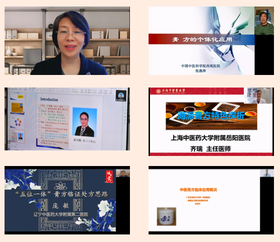 開幕式結(jié)束后,大會(huì)開展了線上學(xué)術(shù)報(bào)告和學(xué)術(shù)交流活動(dòng)。董瑞會(huì)長(zhǎng)做了《中醫(yī)膏方概論》的學(xué)術(shù)報(bào)告;北京中醫(yī)藥大學(xué)蘇慧萍教授、中國(guó)中醫(yī)科學(xué)院西苑醫(yī)院張燕萍教授、港澳臺(tái)中醫(yī)醫(yī)師聯(lián)合促進(jìn)會(huì)總會(huì)會(huì)長(zhǎng)盧致鵬教授、上海中醫(yī)藥大學(xué)岳陽(yáng)中西醫(yī)結(jié)合醫(yī)院齊瑞教授、遼寧中醫(yī)藥大學(xué)附屬第二醫(yī)院龐敏教授、廣西中醫(yī)藥大學(xué)第一附屬醫(yī)院賓博平教授六位中醫(yī)膏方專業(yè)委員會(huì)副會(huì)長(zhǎng)分別作了《膏方防治慢阻肺的組方用藥特點(diǎn)》《膏方的個(gè)體化應(yīng)用》《脾胃系統(tǒng)(慢性胃炎疾?。┑闹形麽t(yī)論述臨床觀察與證型研究》《海派膏方的特點(diǎn)》《膏方臨床應(yīng)用思路》《中醫(yī)膏方臨床概論》的學(xué)術(shù)報(bào)告,并與在線專家學(xué)者進(jìn)行了互動(dòng)交流。中醫(yī)膏方專業(yè)委員會(huì)第二屆理事會(huì)換屆會(huì)議暨第五屆學(xué)術(shù)年會(huì)取得了圓滿成功。