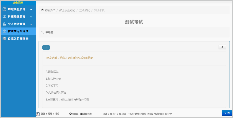 針對醫(yī)院等級評審和日常護理管理需要,護理在線學習與考試系統,可以方便地完成全程在線學習、考試、統計以及持續(xù)跟蹤,試題設置、一鍵下發(fā),在線學習、省心省力。