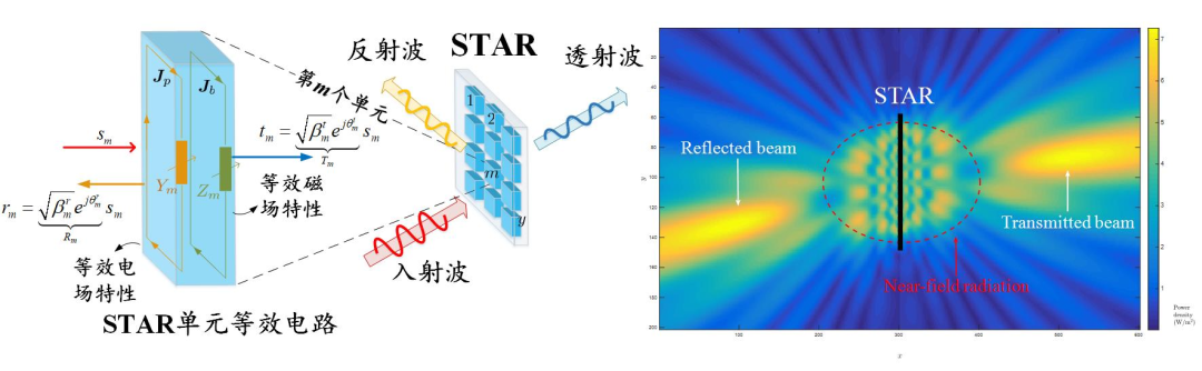 就 STARS 的控制而言,STARS 需要同時考慮每個單元折射和反射信號的控制,于是 STARS 的控制相比傳統(tǒng) RIS 更加復(fù)雜。每個 STARS 陣元需要具備獨立可調(diào)的表面電、磁阻抗,這樣,每個單元中的面電流強度(對應(yīng)電阻抗)和渦旋電流強度(對應(yīng)磁阻抗)才可以被改變,從而人為的控制其產(chǎn)生的反射和透射信號的幅值與相位,對無線信號的傳播環(huán)境進行“人工配置”。