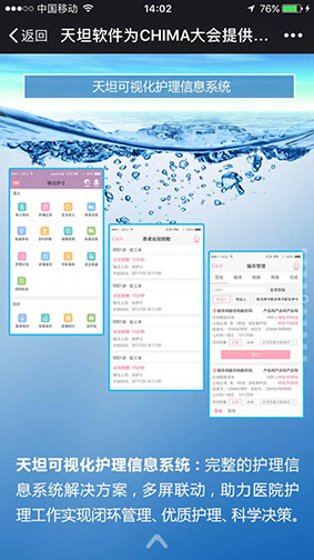 天坦軟件在本次展會展出天坦可視化護理信息系統(tǒng)、天坦移動醫(yī)生助手、天坦移動查房筆等自主主打產(chǎn)品。天坦工作人員在展前做了精心準(zhǔn)備,在展會上為大家進行產(chǎn)品講解和演示,可以生動還原產(chǎn)品的使用情景,請大家拭目以待。